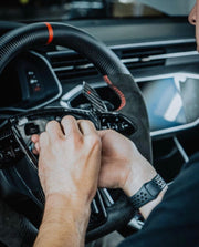 Customize your EZT wheel with options like gloss carbon, perforated or smooth leather, and Alcantara suede. Choose your stitching color, center stripe color, and more to make it uniquely yours.